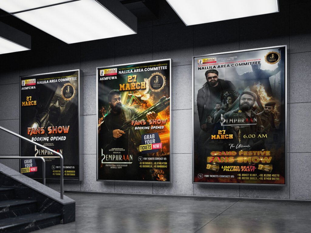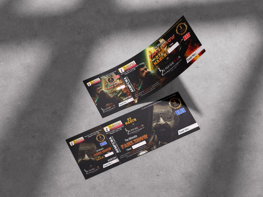 Our movie poster and fan show ticket designs are crafted to capture the essence of cinema while creating excitement and emotional connection among audiences. Each design focuses on storytelling, visual impact, and theme alignment with the film’s narrative and genre.